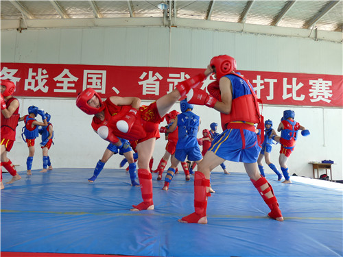 散打的练习是有氧和无氧的结合,运动强度大。训练课结束的时候,大家浑身就像水洗的一样。