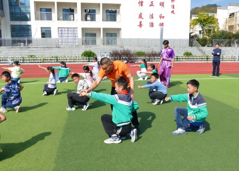 11 月 3 日上午,我校参加由致公党安徽省委会承办的“六侨联动 同心示范工程 ”助力乡村振兴调研活动 ,赴金寨县前畈开展教育帮扶活动。活动期间,我校以武术进校园这一特殊形式对金寨同心小学进行了教育帮扶。活动中,江淮理工学校董事长杨洪洲为同心小学的孩子们上 了一节精彩的武术指导课,他用通俗易懂的语言为同学们讲解武 术理论、示范武术基本动作,耐心细致的为孩子们纠正动作细节,同学们一拳一掌、一招一式练得非常认真。