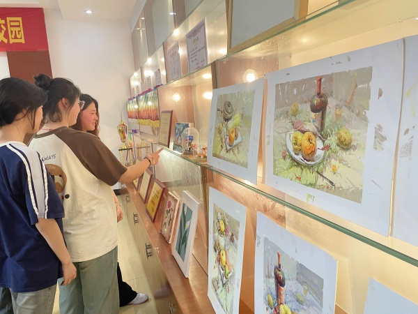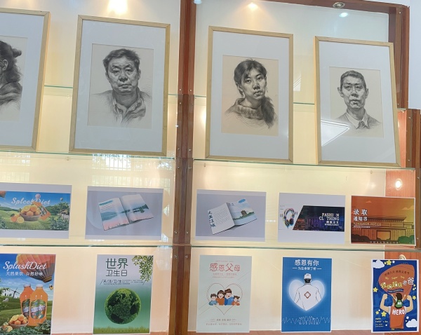 展厅内的作品丰富多彩,风格各异,涵盖了绘画、幼儿保育、平面设计等多个专业领域,许多路过展厅的老师和同学频频驻足,观赏学习。水彩画、手工作品以及海报设计、素描画等作品不仅展示了学生扎实的专业技能和职业梦想,还体现了他们刻苦钻研、精益求精的工匠精神。