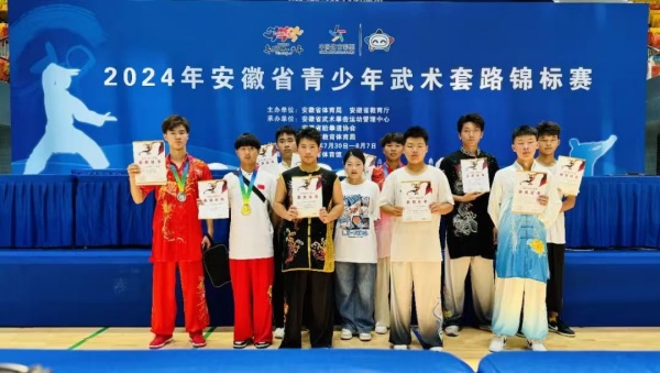 在本次锦标赛中,江淮理工学校派出运动训练班的11名运动员参赛,他们凭借着出色的武术功底,最终获得1个第一名、2个第二名、2个第四名、2个第五名、1个第六名、2个第七名、2个第八名;其中3名同学(李峰、刘振、时元浩)取得国家二级运动员证。