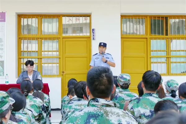 郭所长首先通过生动的案例分析,引发同学们的思考,迅速将大家带入情境之中,然后分别从交通安全、消防安全、反校园欺凌、反电信诈骗、反邪教、防溺水等方面向同学们进行了普法宣讲,讲解了什么是校园欺凌,校园欺凌的类型、形式,如何预防电信诈骗、未成年人如何加强自我保护等内容。